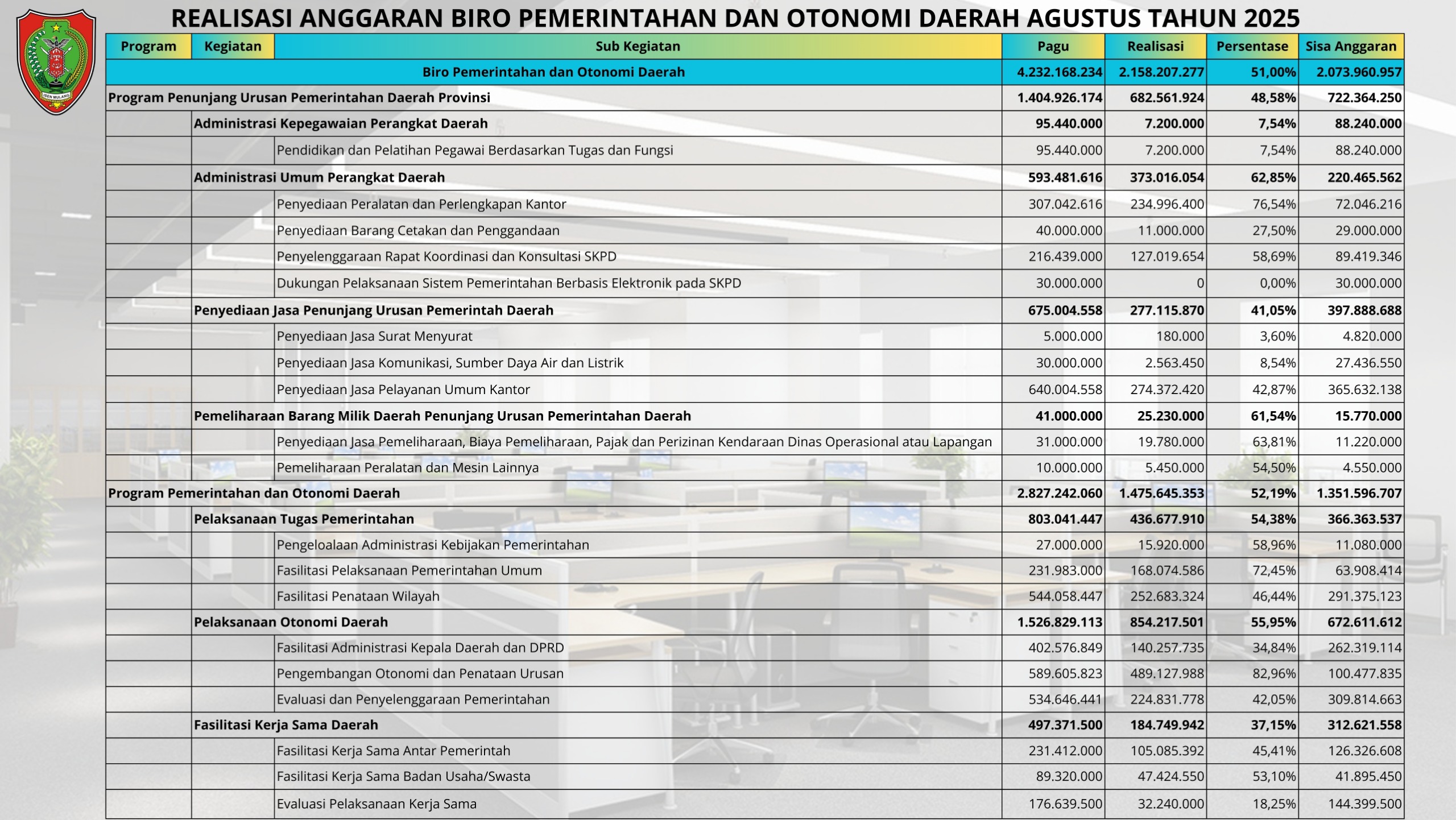 Realisasi Anggaran Tahun 2025 Per Bulan Agustus